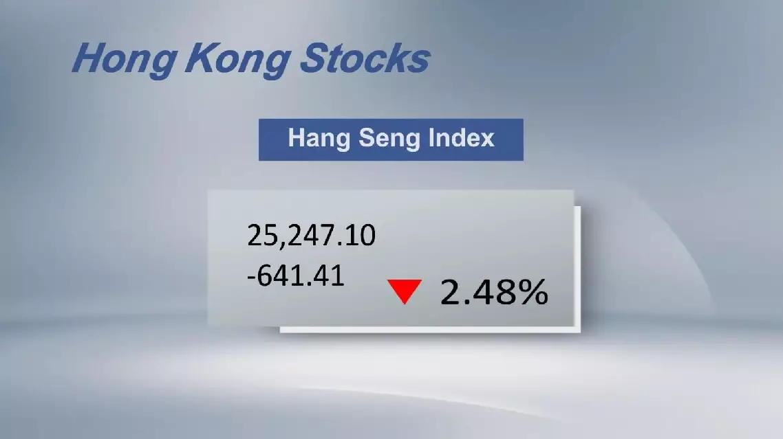 Hong Kong stocks market ended lower Friday with the benchmark Hang Seng Index down 2.48 percent to close at 25,247.1 points.