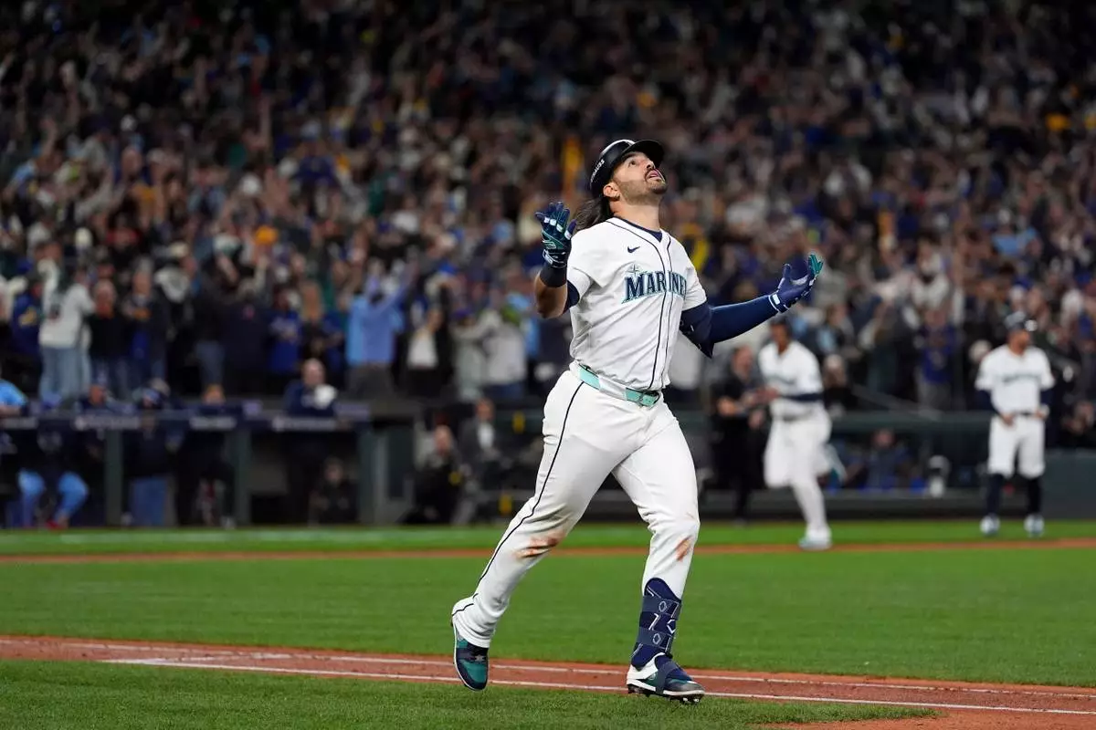 Suárez suddenly stopped, pointed toward his wife in the stands behind home plate and took a second to embrace the moment. His bat had brought the Mariners within a victory of the the first World Series trip for a team that started play in 1977.