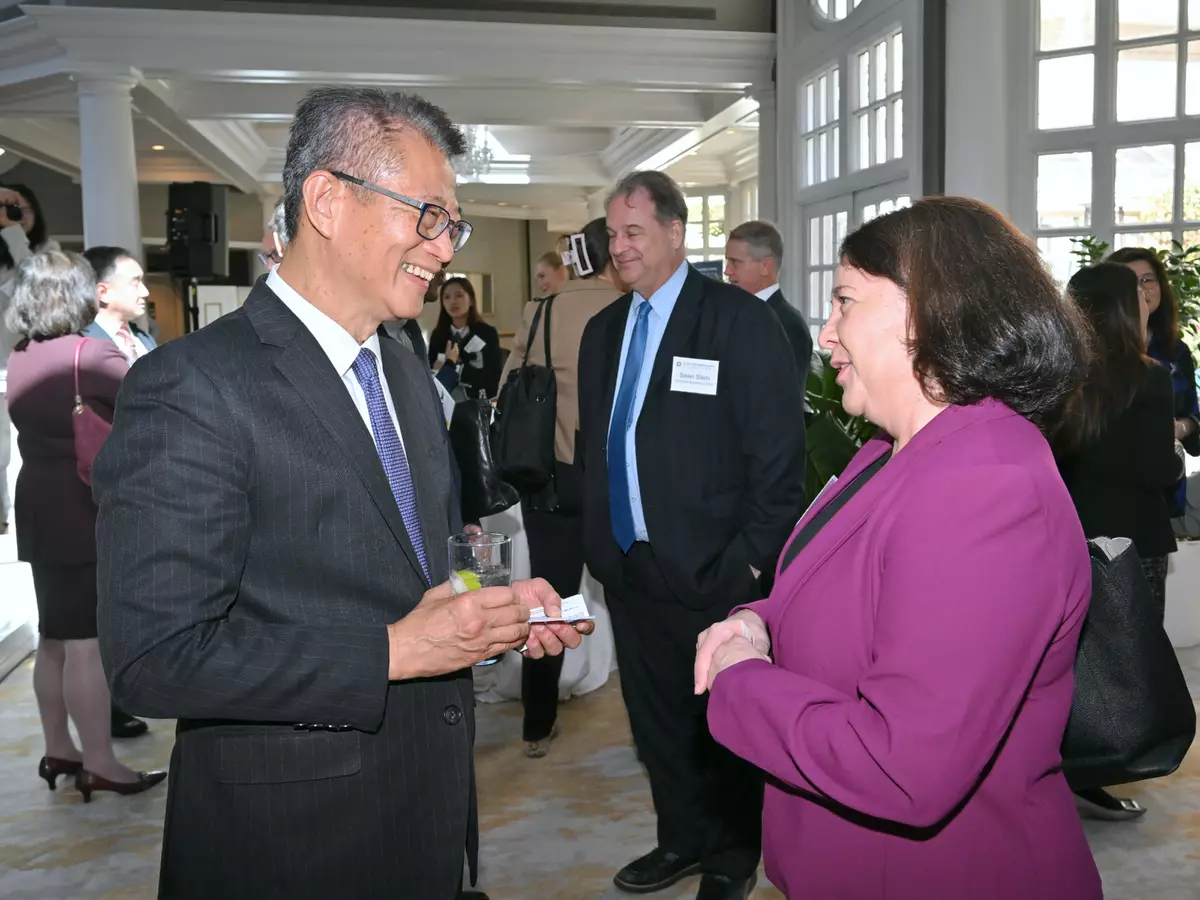 Later, Mr Chan attended a roundtable discussion hosted by the US think tank Atlantic Council, where he exchanged views with representatives from multinational corporations, financial institutions, and local think tanks. He briefed them on Hong Kong's current economic and financial conditions, its innovation and technology development, and discussed topics including trade, finance, digital assets and innovation.