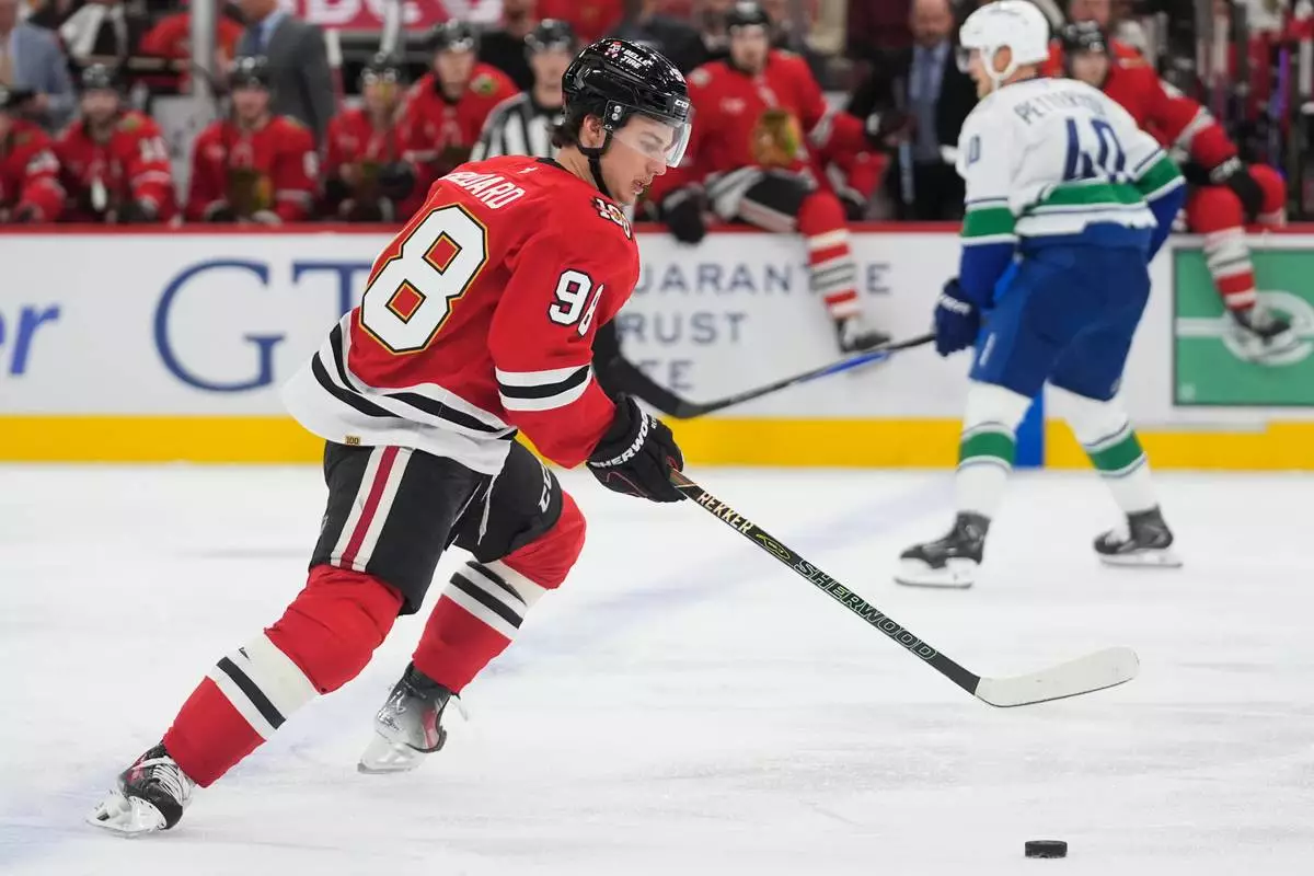 Bertuzzi doubled Chicago's lead with 46 seconds to go in the first as he scored on the rebound of Sam Rinzel's shot into the top left corner past a Lankinen, who had lost his stick 10 seconds earlier.