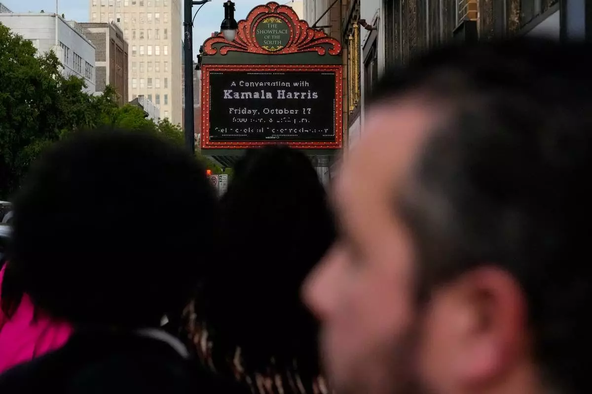 Over the course of the day, Harris sat down for an hourlong conversation with five Black college students, spoke to the AP and held two book discussions in Alabama's largest city. Paid ticketholders filled downtown Birmingham's Alabama Theatre, where Harris discussed her campaign, the Democratic Party and the course of the nation with radio host Charlamagne tha God.