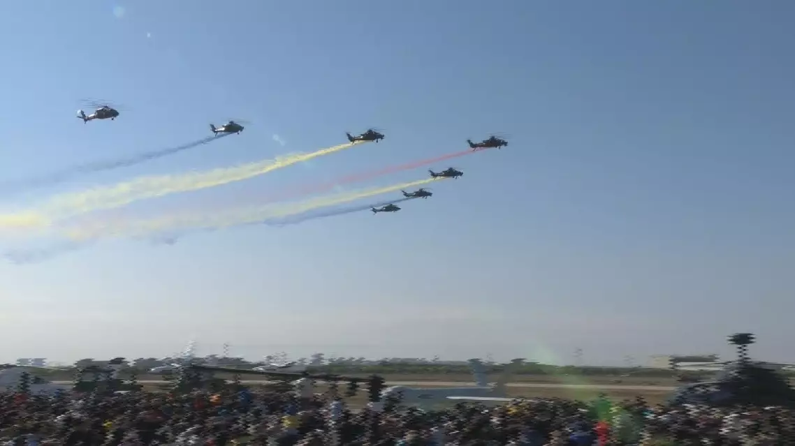 Among the aircrafts that brought spectacular show to the expo are the Z-10 and Z-20 helicopters from the Fenglei (literally "wind and thunder") aerobatic team of the Chinese People's Liberation Army (PLA) , which delivered a stunning aerial display to crowds of spectators on the first public day, showcasing their breathtaking performance and maneuverability.