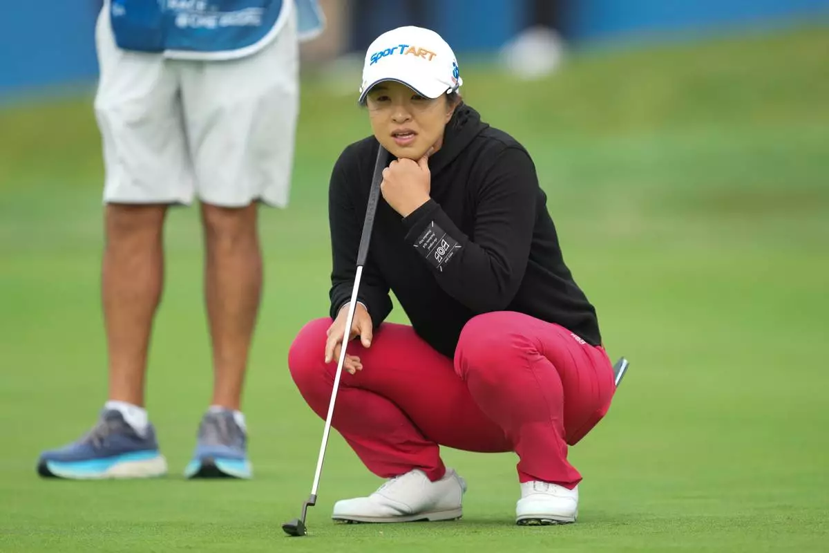 Sei Young Kim of South Korea lines up putt on the 18th green during the final round of the LPGA Ladies Championship golf tournament at the Pine Beach Golf Links, in Haenam, South Korea, Sunday, Oct. 19, 2025. (AP Photo/Lee Jin-man)