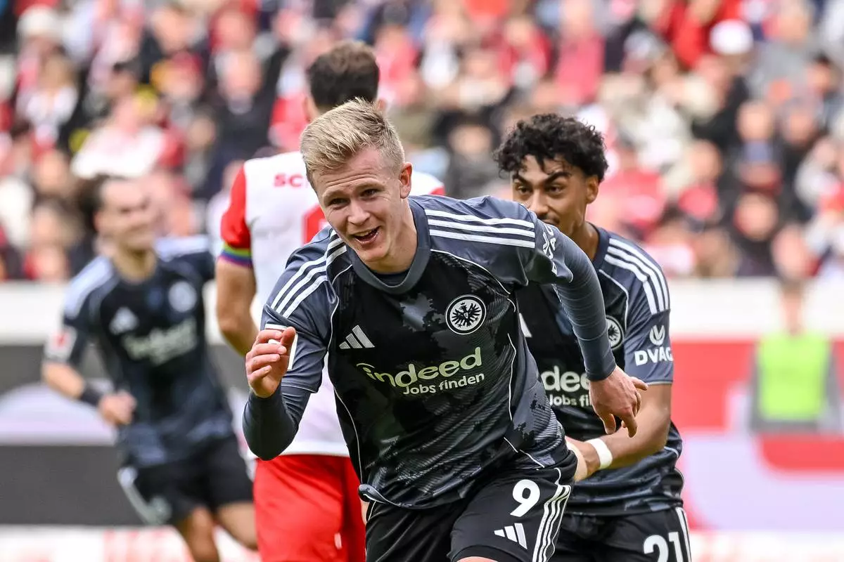 Jonathan Burkardt controlled the ball with his right boot and fired it past Freiburg goalkeeper Noah Atubolu with his left to equalize in the 18th, then scored again before the break to put Frankfurt ahead.