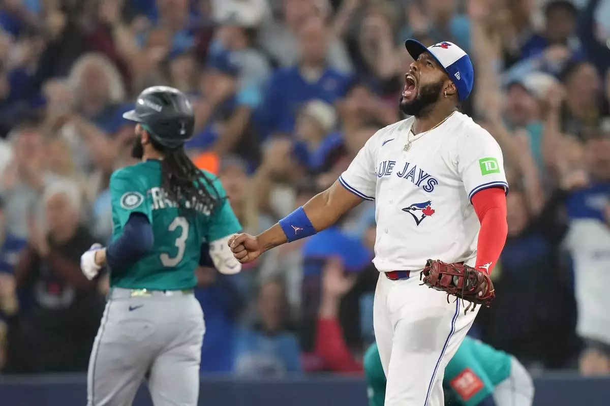 Guerrero was hit by a pitch from Seattle reliever Matt Brash in the seventh. Guerrero moved to second on Alejandro Kirk’s single and was advancing on a wild pitch when he scored on Raleigh’s throwing error.