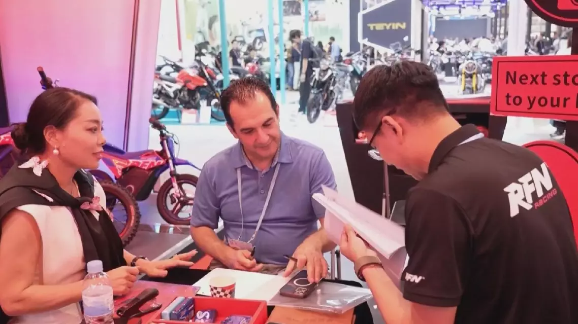 During the first phase of the 138th Canton Fair, officially known as the China Import and Export Fair, which ran from Wednesday to Sunday in south China's Guangzhou City, American buyer Faris returned to the motorcycle exhibition zone to reconnect with a familiar partner: a sports technology company based in east China's affluent Zhejiang Province.