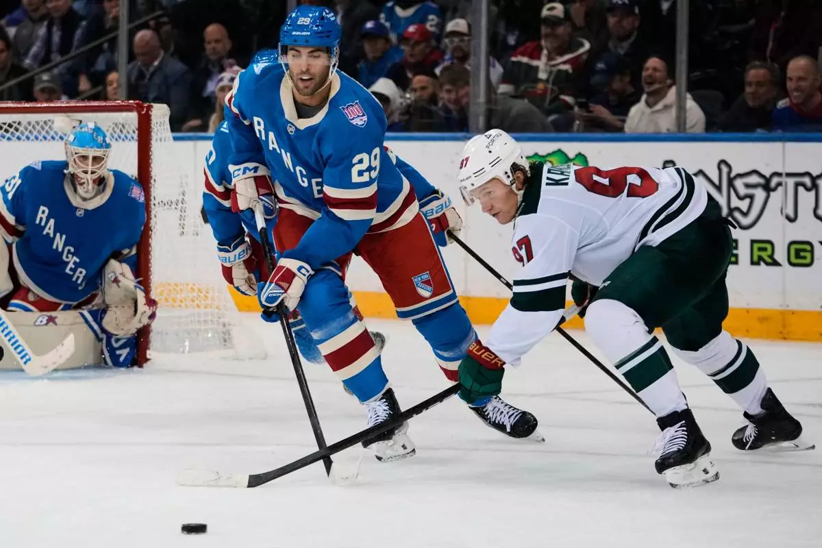 The Wild outshot the Rangers 17-6 in the first period, with each team scoring once.