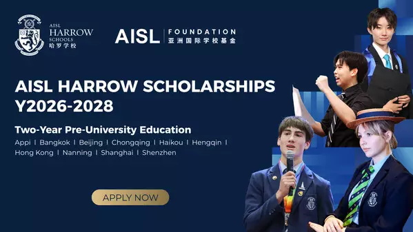 HONG KONG, Oct. 21, 2025 /PRNewswire/ -- The opening of applications for the 2026-28 AISL Harrow Scholarships starts from 20th October to 30th November 2025. Now in its sixth year, the Scholarship programme invites young people from across the globe to pursue a two-year pre-university education (equivalent to Years 12-13, Grades 11-12, or IB Diploma) at AISL Harrow Schools.