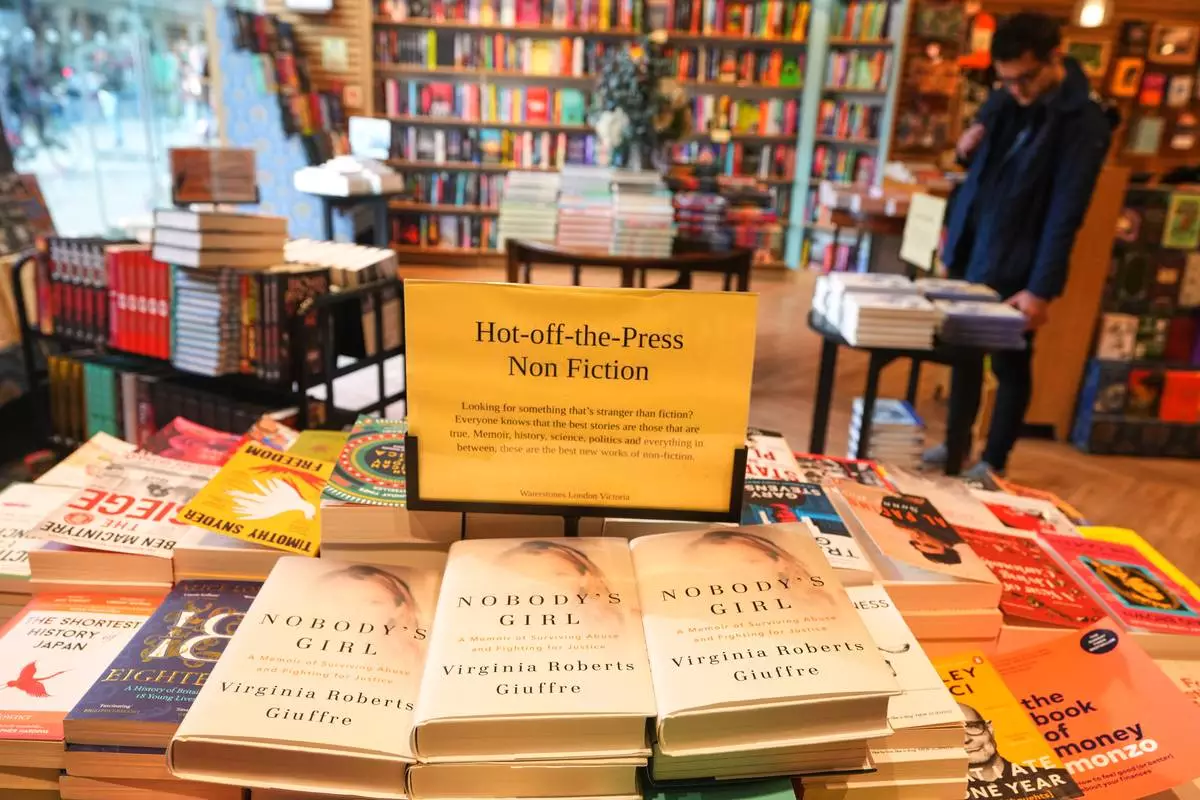 The memoir book of Virginia Giuffre, "Nobody's Girl" is seen in a book store and is up for sale in London, Tuesday, Oct. 21, 2025 six months after Giuffre died by suicide in April.(AP Photo/Kirsty Wigglesworth)