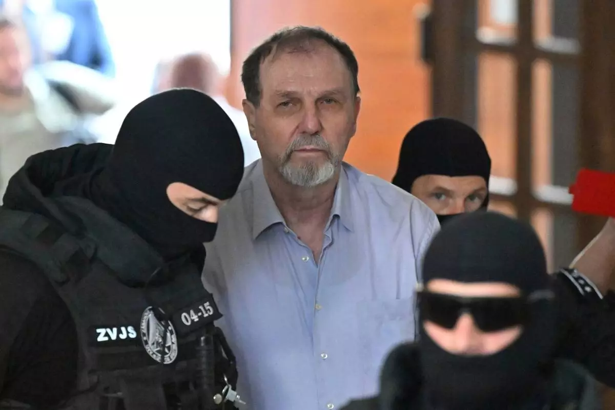 Juraj Cintula, who shot and seriously injured Prime minister of Slovakia Robert Fico last year, is convoyed at the Specialized Criminal Court in Banska Bystrica, Slovakia, Tuesday, Oct. 21, 2025. (Jan Kroslak/TASR via AP)