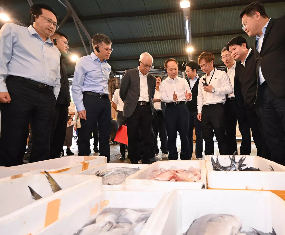 Accompanied by the Secretary for Environment and Ecology, Mr Tse Chin-wan, a delegation led by Vice Minister of Agriculture and Rural Affairs Mr Zhang Zhili today (October 21) visited the Aberdeen Wholesale Fish Market under the Fish Marketing Organization (FMO)to understand the production and wholesale of fisheries products in the Hong Kong Special Administrative Region (HKSAR) and to exchange views on the development of agriculture and fisheries in both places.
