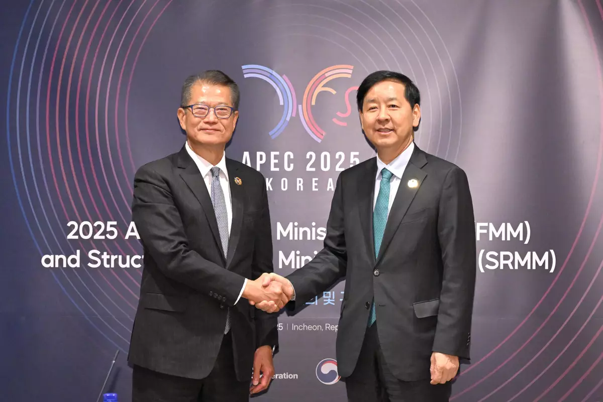 The Financial Secretary, Mr Paul Chan, attended the Asia-Pacific Economic Cooperation (APEC) Finance Ministers' Meeting in Incheon, Korea, today (October 21), and met with the Chair of the Meeting, Deputy Prime Minister and Minister of Economy and Finance of the Republic of Korea, Mr Koo Yun-cheol.