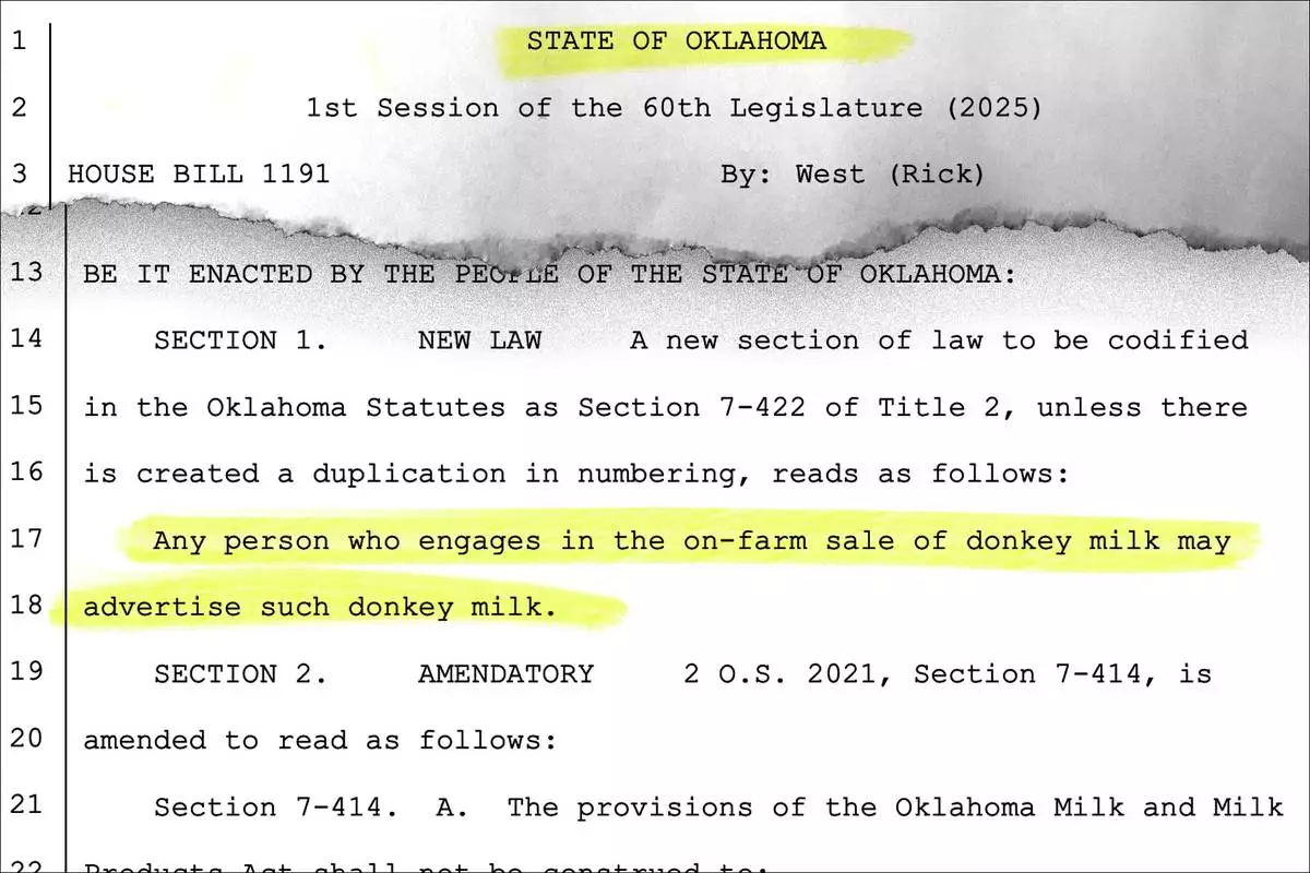 On raw milk, bills would allow for sales beyond farms in Arkansas, decriminalize its sale in Hawaii and let Oklahoma farms sell raw donkey milk.