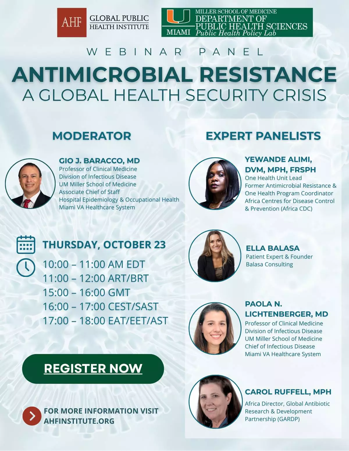 AIDS Healthcare Foundation ( AHF ), in collaboration with the University of Miami Public Health Policy Lab, will cohost a webinar, “Antimicrobial Resistance – A Global Health Security Crisis,” on Thursday, October 23, 2025 at 10:00 AM EDT, virtually via Zoom. Register here.