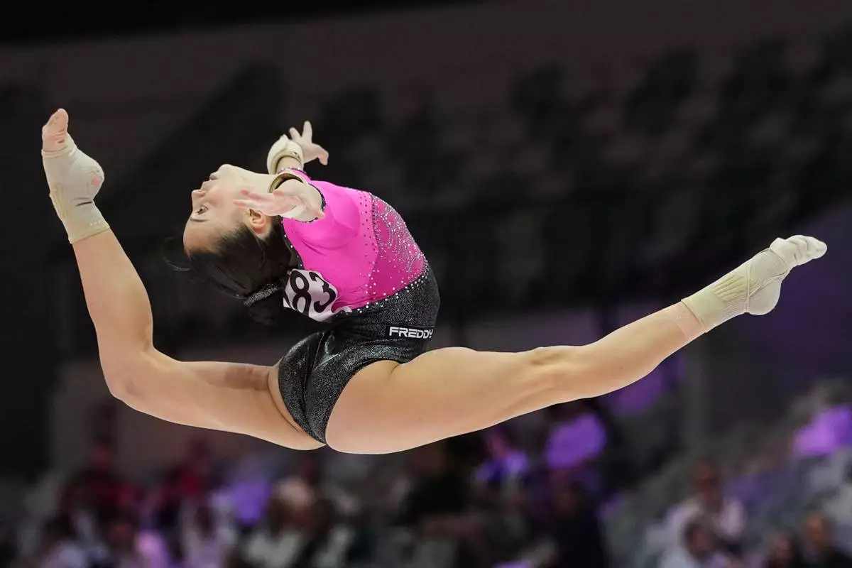 Giulia Perotti of Italy performs her floor exercise routine during the 53rd Artistic Gymnastics World Championships in Jakarta, Indonesia, Tuesday, Oct. 21, 2025. (AP Photo/Dita Alangkara)