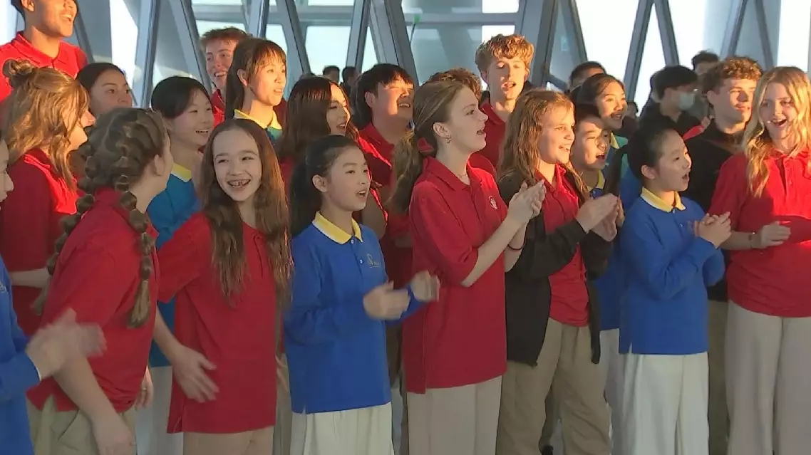 "I think music is so powerful and creates such a bond between people. I mean, I'm not really understanding the words of this song, but I just know that it's so powerful to everybody and just music can span gaps that words can't always fill," said Cody, a member of One Voice Children's Choir.