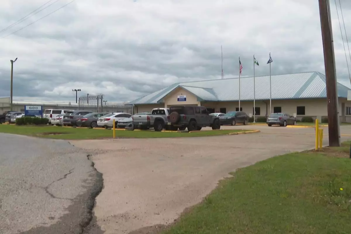 This image taken from video shows the South Louisiana ICE Processing Center in Basile, La., April 7, 2025. (AP Photo/Stephen Smith)
