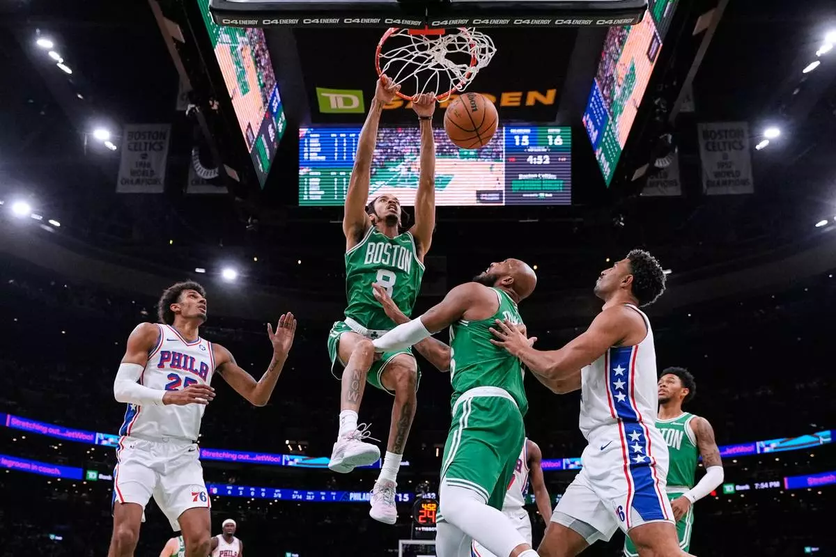 Derrick White scored 13 points of his 25 points in the third quarter, when the Celtics scored 16 straight points to turn a five-point deficit into an 11-point lead. The Celtics led 94-84 with nine minutes remaining before the Sixers scored eight straight points to make it close.