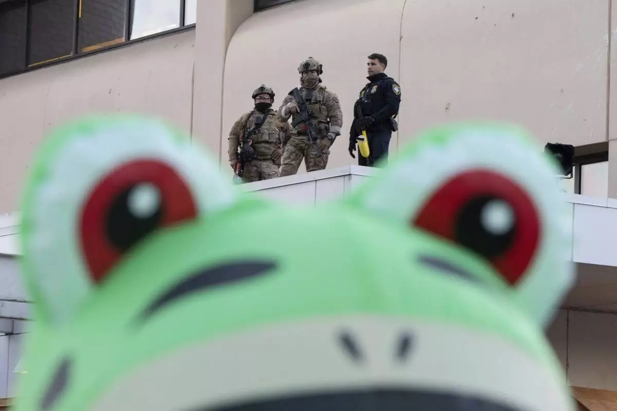 In recent weeks, Portland residents have launched groups such as the Portland Frog Brigade, whose members sport inflatable frog costumes, and Operation Inflation, which hands out inflatable costumes to protesters for free.