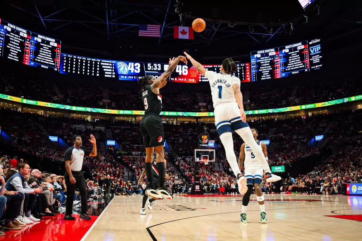 The Blazers went ahead 46-40 midway through the second quarter on Kris Murray's 3-pointer. But Jaden McDaniels answered on the other end with an emphatic dunk over Portland's 7-foot-1 rookie Yang Hansen.