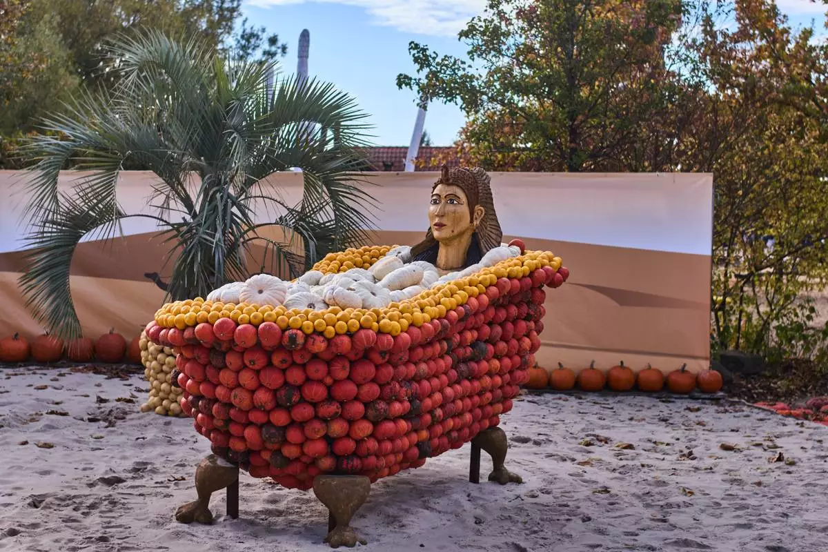 Gesine Struppert, who visited the farm with her little daughter from the town of Wittenberg, said she was inspired to make new pumpkin dishes at home and was impressed by the sculptures.