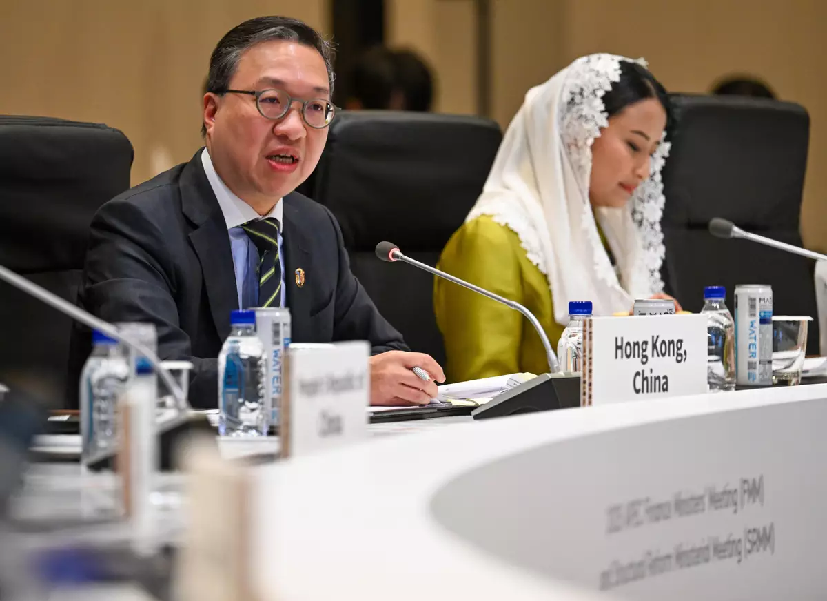Mr Lam then attended the third and fourth discussion sessions of the ministerialmeeting. On the topic of how structural reform can promote prosperity for all, Mr Lam stated that Hong Kong, China has always been committed to sharing the fruits of prosperity with members of the public. The Chief Executive's Policy Address this year, with the theme "Deepening Reforms for Our People and Leveraging Our Strengths for a Brighter Future", perfectly reflects this policy objective. During the discussion session, Mr Lam introduced Hong Kong, China's measures in housing, labour, healthcare, and support for the development of micro, small and medium-sized enterprises. He also elaborated on Hong Kong, China's vision of further improving people's livelihoods and building a fair and just society through legislation, updating laws, and developing the economy through reforms.