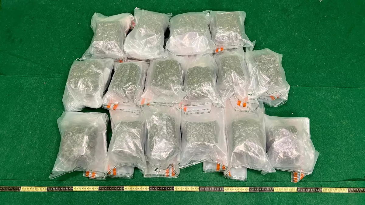 In the second case, a 35-year-old male passenger arrived in Hong Kong from Bangkok, Thailand, on the same day. During customs clearance, Customs officers found 8kg of suspected cannabis buds from 17 vacuum-sealed plastic bags inside his check-in suitcase. The estimated market value was about $1.6 million. The man was subsequently arrested.