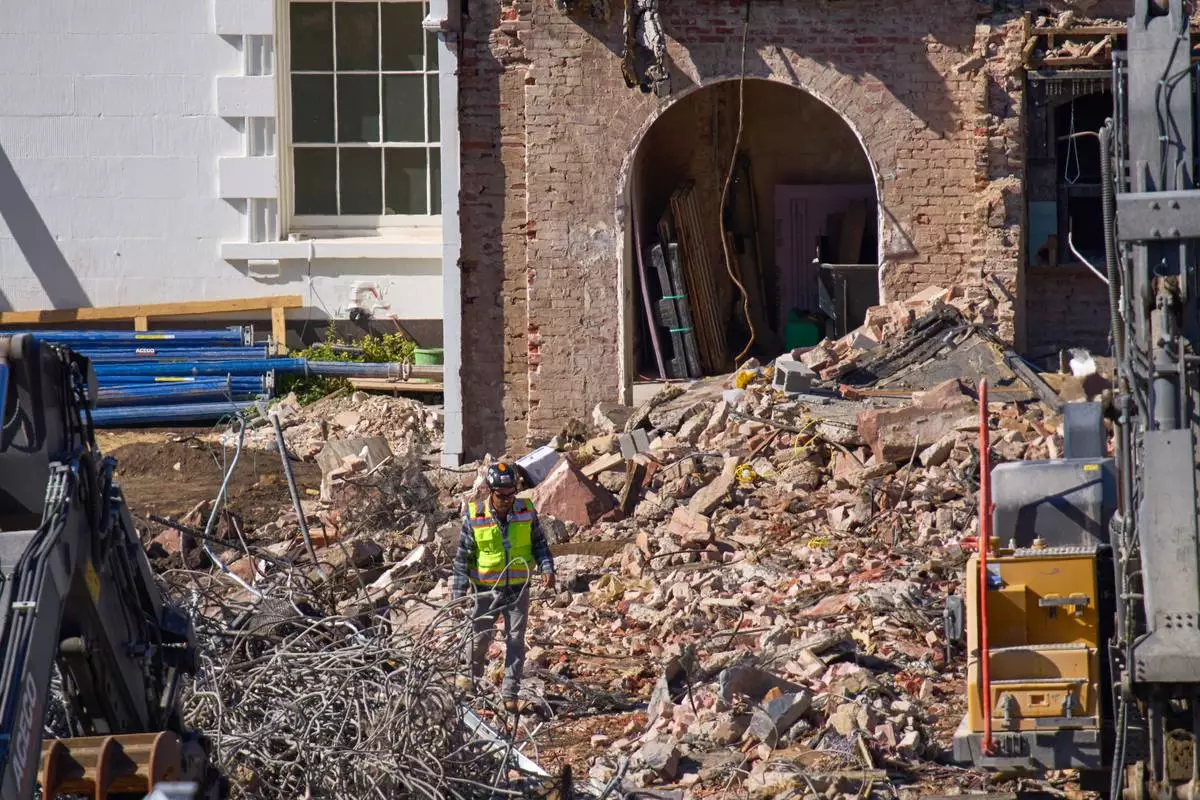 A worker walks through debris at a largely demolished part of the East Wing of the White House, Thursday, Oct. 23, 2025, in Washington, before construction of a new ballroom. (AP Photo/Jacquelyn Martin)