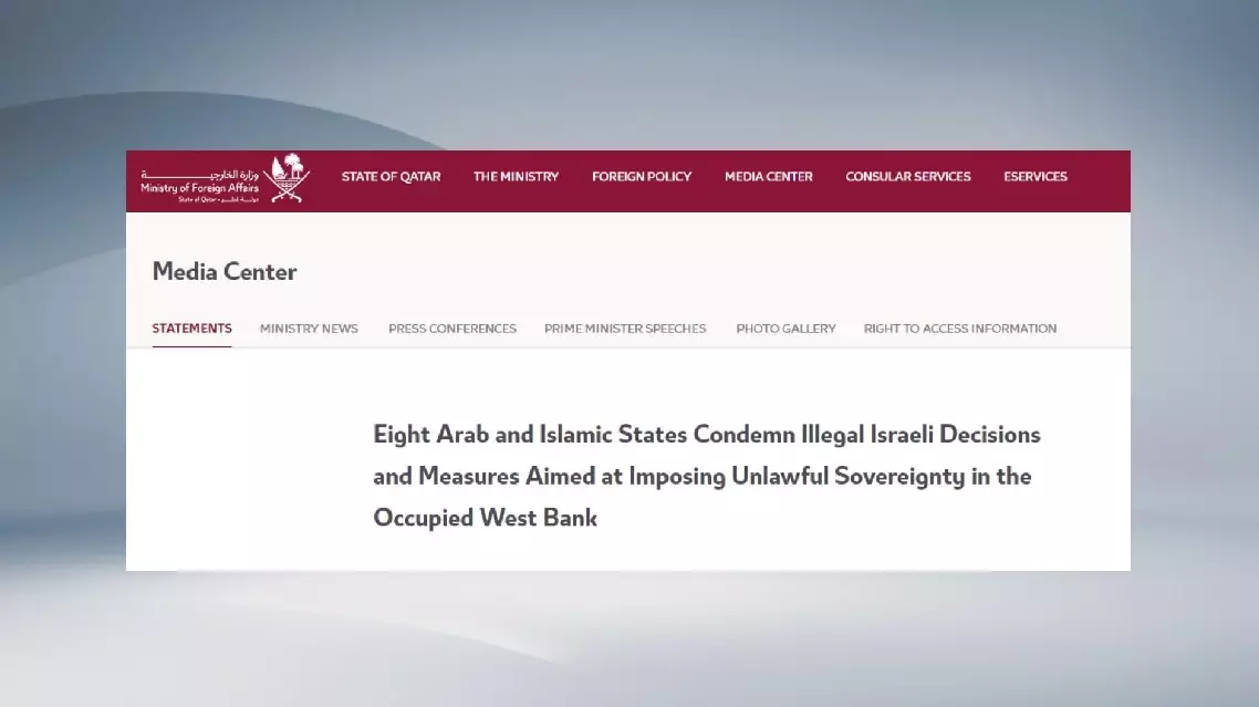 In a joint statement, the foreign ministers of Qatar, Jordan, the United Arab Emirates, Indonesia, Pakistan, Türkiye, Egypt and Saudi Arabia reaffirmed their position that Israel has no sovereignty over occupied Palestinian territory.