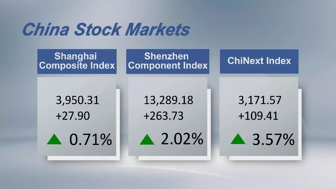The ChiNext Index, tracking China's Nasdaq-style board of growth enterprises, gained 3.57 percent to close at 3,171.57 points.