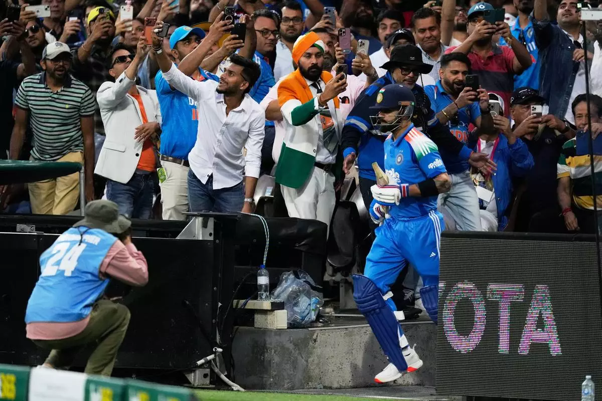 India's Virat Kohli runs out to bat against Australia during their One Day International cricket match in Sydney, Australia, Saturday, Oct. 25, 2025. (AP Photo/Rick Rycroft)