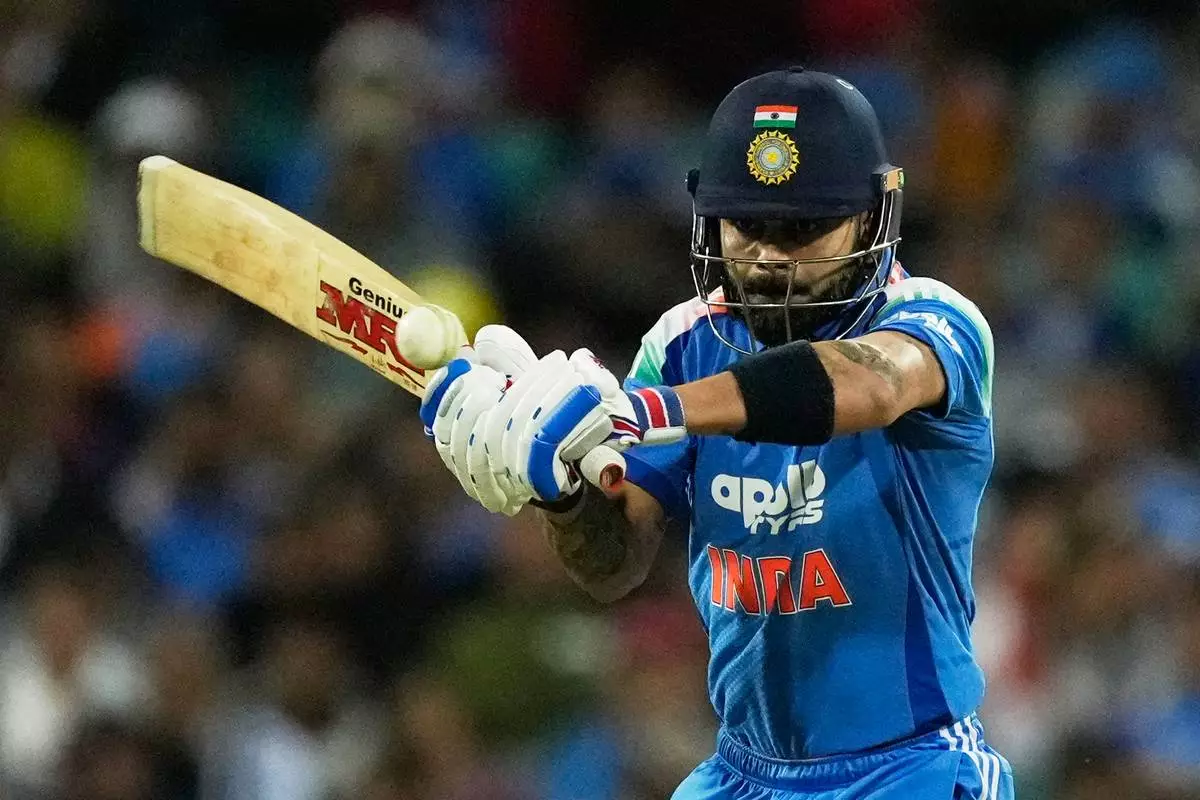 India's Virat Kohli bats against Australia during their One Day International cricket match in Sydney, Australia, Saturday, Oct. 25, 2025. (AP Photo/Rick Rycroft)