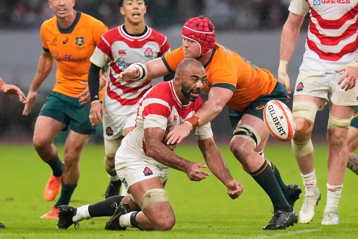 Australia led 14-3 at halftime and was only just hanging on at times as Japan scored two tries to one in the second half. Prop Shuhei Takeuchi and Ben Gunter scored for Japan, keeping the score close, while Tizzano scored for Australia from a powerful lineout drive.