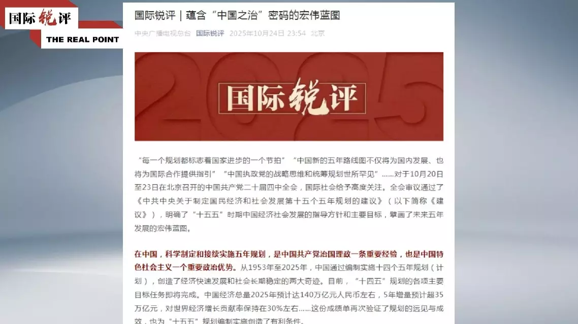 China's latest five-year plan has drawn international attention, with observers calling each national plan "a beat marking the rhythm of the country's progress" and noting that the new roadmap will not only guide China's domestic development, but also provide direction for international cooperation. As some analysts have put it, "the strategic thinking and top-level planning of the Chinese ruling party is rarely seen elsewhere."