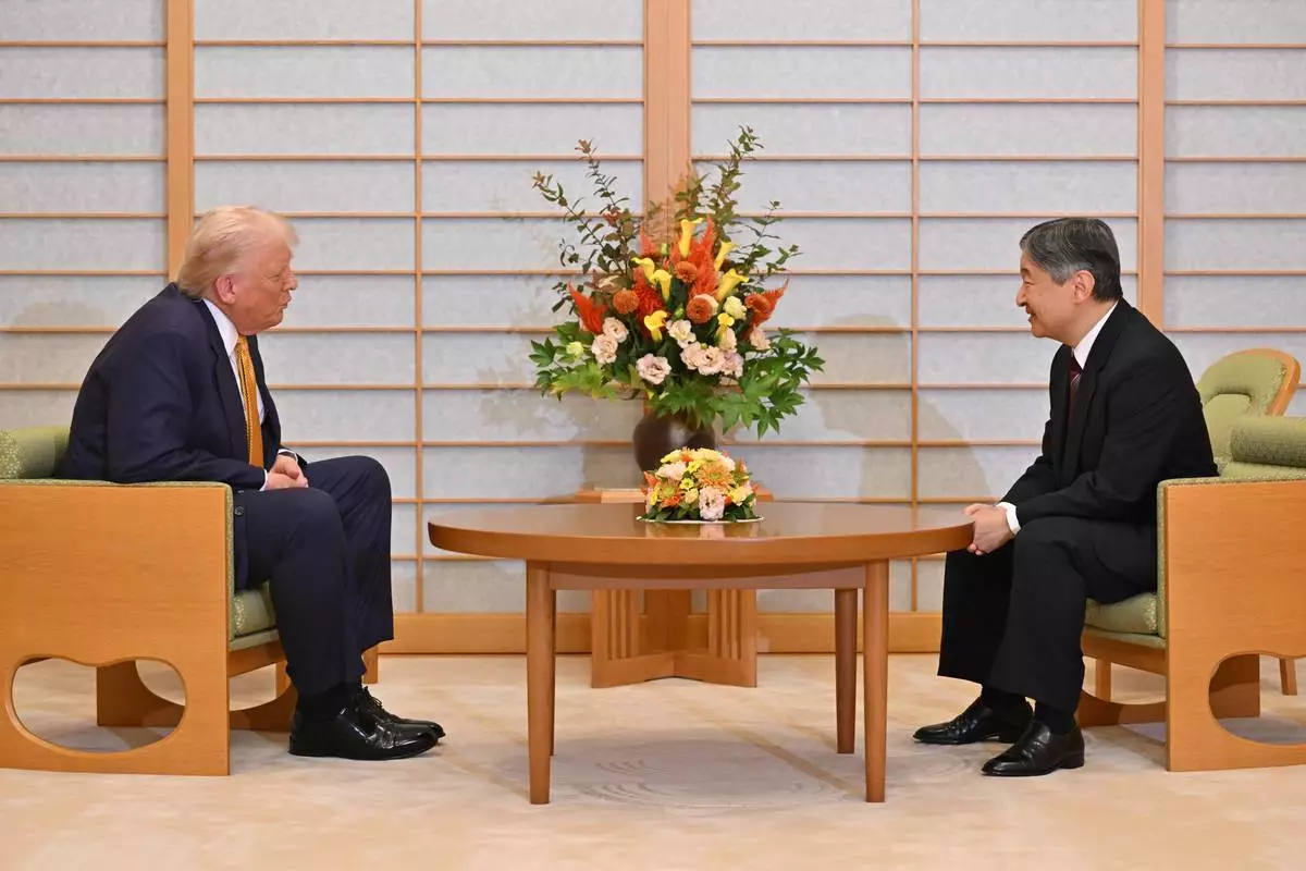 TOKYO (AP) — President Donald Trump opened his visit to Japan on Monday with greetings from the emperor a day before he meets new Prime Minister Sanae Takaichi, who is banking on building a friendly personal relationship with the U.S. leader to ease trade tensions.