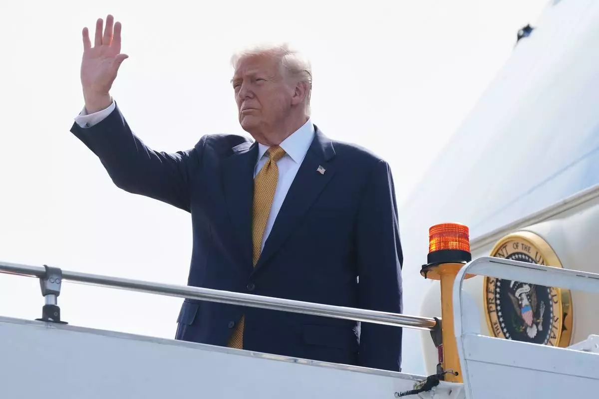President Donald Trump waves as he boards Air Force One at Kuala Lumpur International Airport in Sepang, Malaysia, as he departs for Japan, Monday, Oct. 27, 2025. (AP Photo/Mark Schiefelbein)