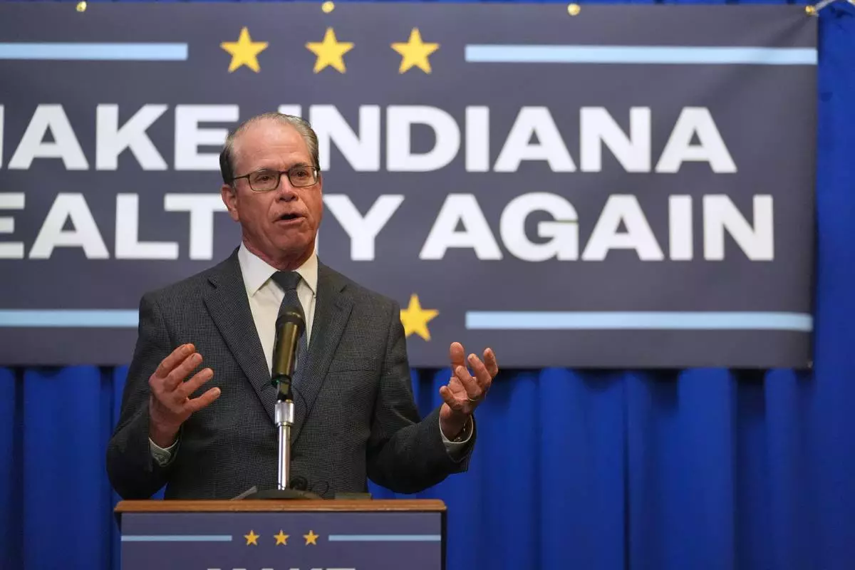 FILE - Indiana Gov. Mike Braun speaks during a Make Indiana Healthy Again initiative event in Indianapolis, April 15, 2025. (AP Photo/Michael Conroy, file)