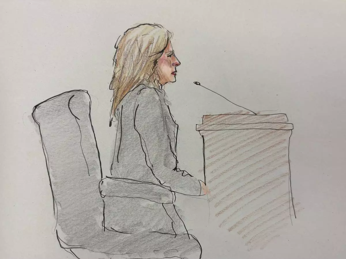 This courtroom sketch depicts Maura Gingerich at Milwaukee County Circuit Judge Hannah Dugan's trial in court, Thursday, Dec. 18, 2025 in Milwaukee, Wis. (Adela Tesnow via AP, Pool)