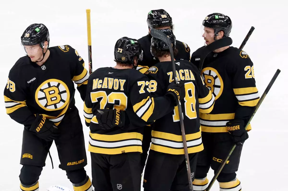 Pastrnak, Elias Lindholm and Mikey Eyssimont scored during Boston's second-period rally after the Bruins managed just four shots on goal in the opening period. Morgan Geekie added a power-play goal in the third and Fraser Minten had an empty-netter as Boston rebounded from a 7-2 loss at Ottawa on Monday night.