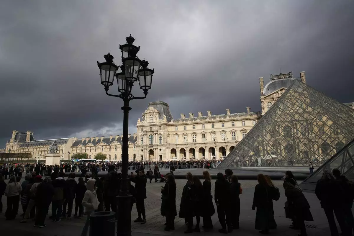 People queue to enter Le Louvre museum Monday, Oct. 27, 2025 in Paris. (AP Photo/Christophe Ena)