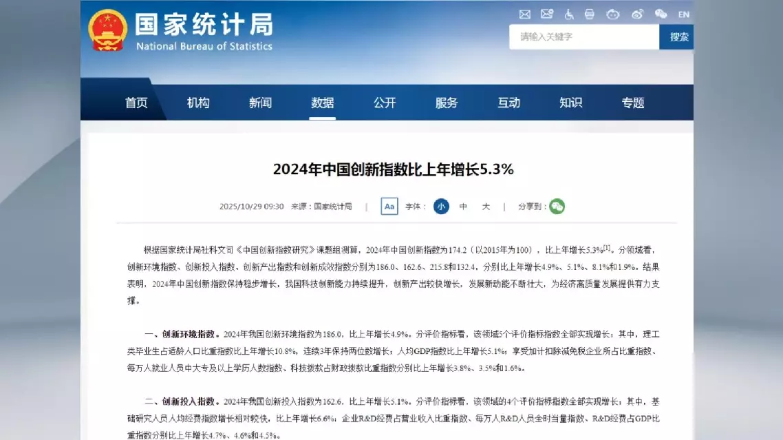The China Innovation Index, a barometer of the country's innovation capability, rose steadily in 2024, official data showed on Wednesday.