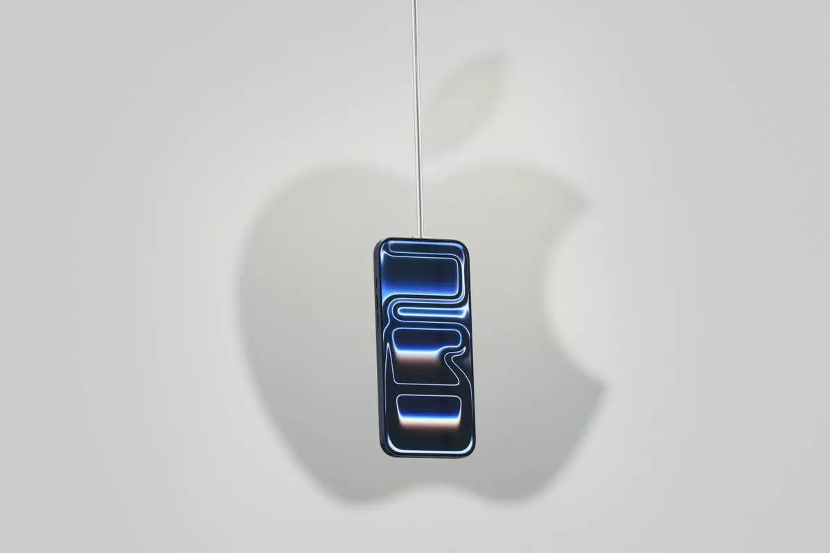 FILE - The iPhone 17 Pro is displayed during an announcement of new products at Apple Park on Tuesday, Sept. 9, 2025, in Cupertino, Calif. (AP Photo/Godofredo A. Vásquez, File)