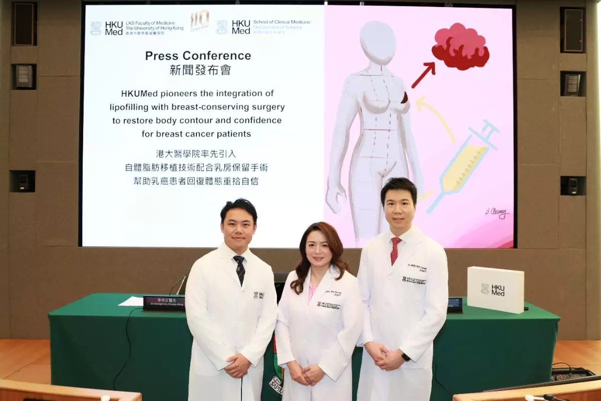 A research team from the Department of Surgery at the School of Clinical Medicine, LKS Faculty of Medicine of the University of Hong Kong (HKUMed), launched a clinical trial in Hong Kong pioneering the use of lipofilling technology in breast-conserving surgery for early-stage breast cancer patients. The procedure involves the immediate reconstruction of the breast using the patient's own fat tissue immediately following tumour removal, addressing common post-operative challenges such as tissue loss and breast deformation. The goal is to provide a new therapeutic option that improves both physical and emotional recovery by improving cosmetic outcomes and overall quality of life. To date, 15 patients have successfully undergone the procedure. Preliminary results are promising, with patients showing minimal surgical trauma, swift recovery, and no signs of serious complications or cancer recurrence.