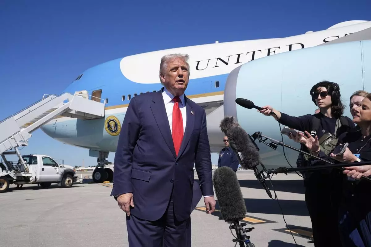 President Donald Trump speaks to the media after arriving at Palm Beach International Airport, Friday, Oct. 31, 2025, in West Palm Beach, Fla. (AP Photo/Manuel Balce Ceneta)