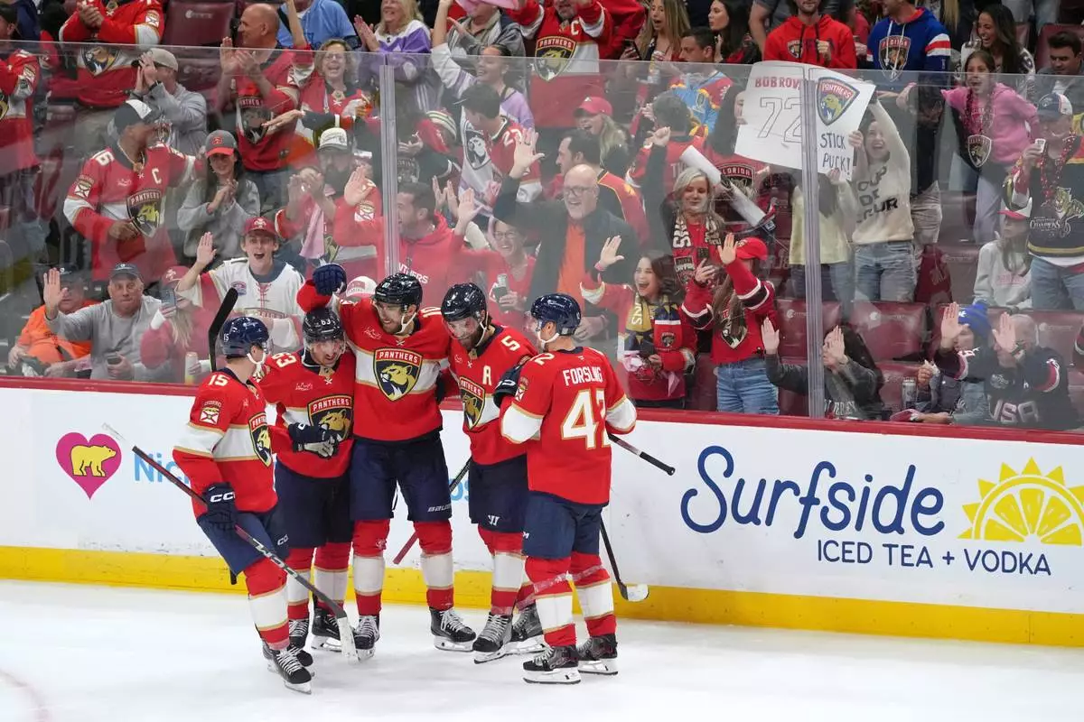SUNRISE, Fla. (AP) — Brad Marchand put the puck in the back of the net for the Florida Panthers on Saturday night, then pointed a finger in the air and looked to the sky.