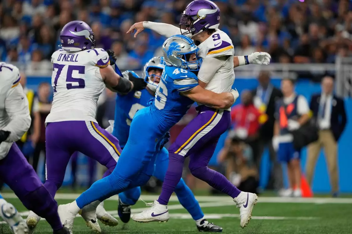 DETROIT (AP) — J.J. McCarthy was hailed by teammates in a jubilant locker room after leading the Minnesota Vikings to a much-needed, 27-24 win over the Detroit Lions on Sunday.