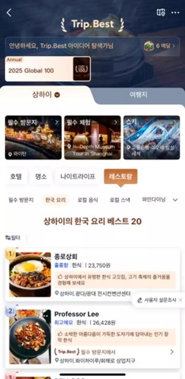 Personalised by user location, the list helps travellers find regional dishes in global cities. For example, Korean users in Shanghai can now discover top-rated Korean restaurants in the city.