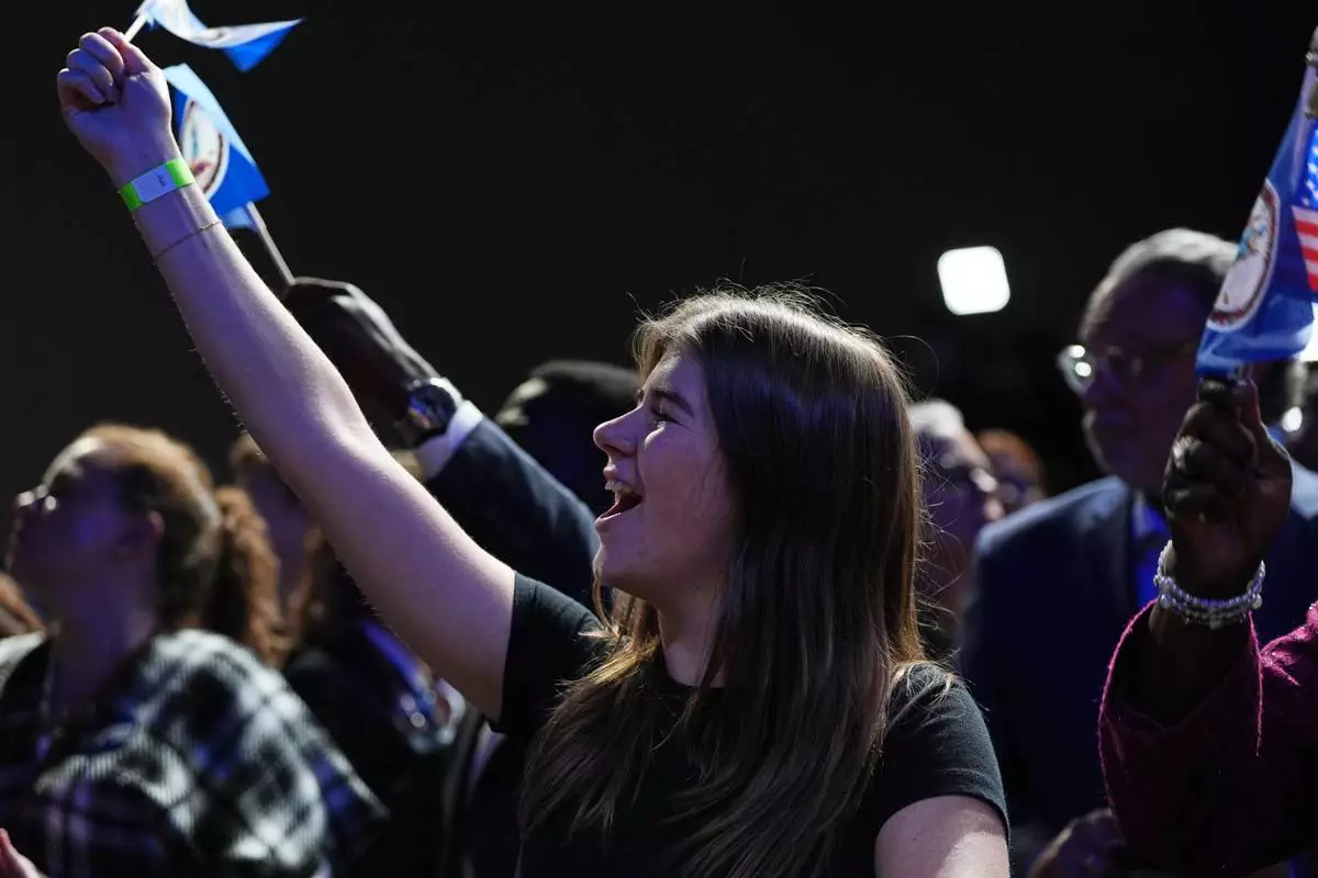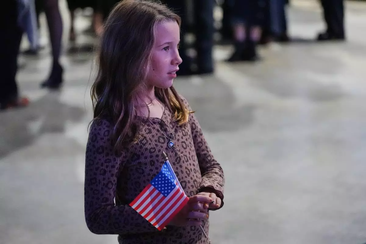 A young girl watches as election results come in during an election night watch party for Virginia Democratic gubernatorial candidate Abigail Spanberger Tuesday, Nov. 4, 2025, in Richmond, Va. (AP Photo/Stephanie Scarbrough)