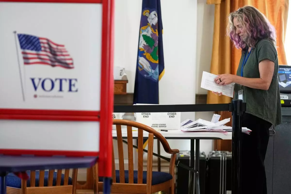 An election official sorts ballots during early voting, Tuesday, Oct. 28, 2025, in Portland, Maine. (AP Photo/Robert F. Bukaty)