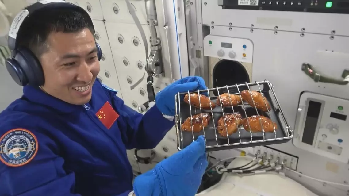 "Those fresh chicken wings are making my mouth water. One for each of us; no extras. Leave a big one to the cameraman," said Chen Dong, Shenzhou-20's mission commander, as the crew videoed this historic first grilled meal.